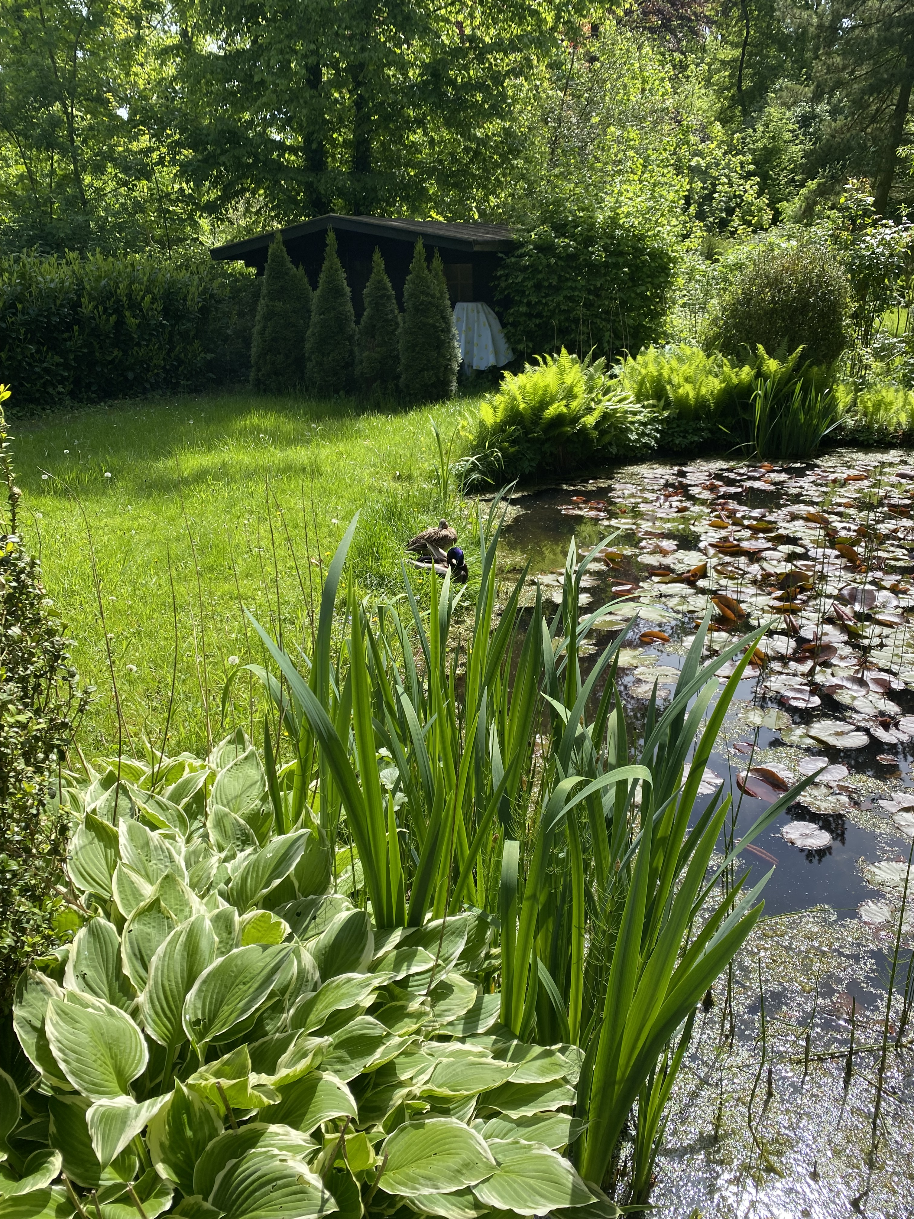 Der großzügig ausgelegte garten mit kleinem Naturteich eignet sich für sonnige Picknicks und Außensport